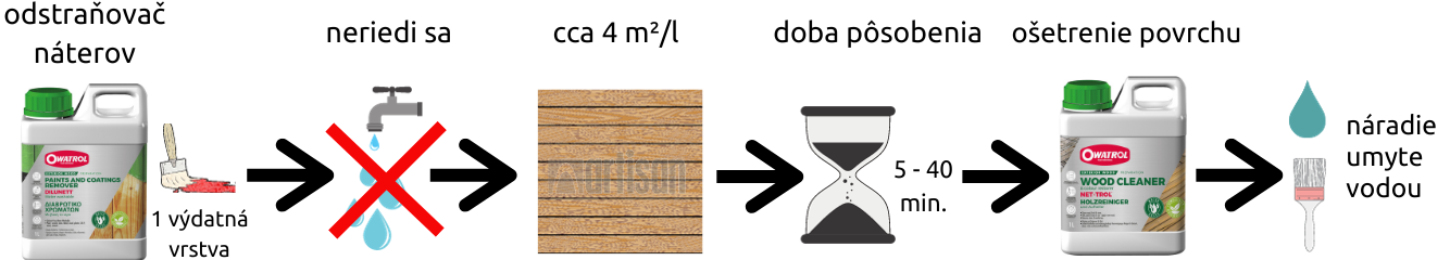 Pre všetky drevené a pórovité povrchy, ako je tehla, kameň a betón vykonajte neutralizáciu pomocou produktu OWATROL Net-trol.