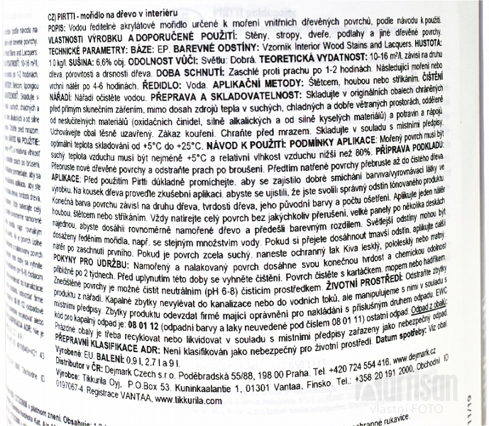 Vodou riediteľné akrylátové moridlo TIKKURILA Pirtti použite na morenie dreva v interiéri