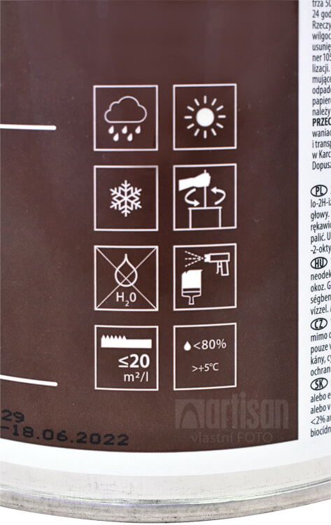 Z 1 l prípravku natrite cca 20 m2/1 náter hladkého dreveného podkladu.